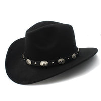 Step into bars and pubs with a cold as stone flair that's hard to match. This hat is seriously stylish, the crown is adorned with oval metal ornaments designed to look like old school Texan belt buckles. Our Innovato Design felt hat is a part fedora, part cowboy hat, and all-around statement piece. Rock the crowd today.