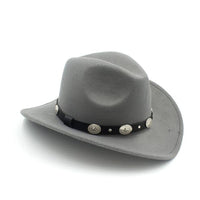Felt Fedora Cowboy Hat with Oval Metal Ornaments on Faux Leather Band