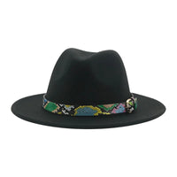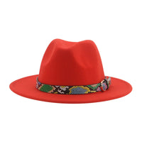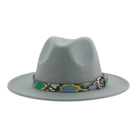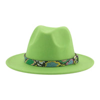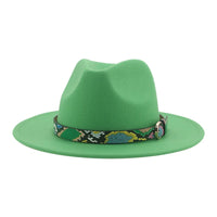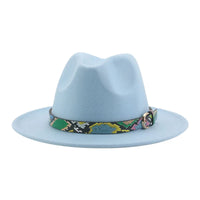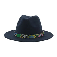 Wide Brim Wool Fedora Hat with Snake Skin Striped Band