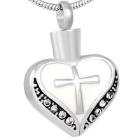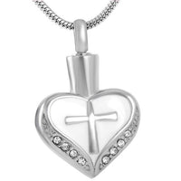 Urn Heart with Cubic Zirconia Crystals and Cross Design Pendant