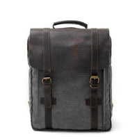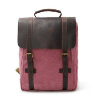 2 Straps Genuine Leather and Canvas Backpack in 4 Colors