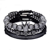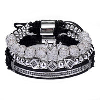 3-Piece Crown, 8mm Micro Pave Cubic Zirconia Ball and Beads Hip-Hop Charm Bracelet