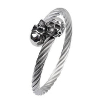 Punks often distinguish themselves by having a unique style of punk rock fashion. Complete that look with this trendsetter bracelet from Innovato Design made from high-class 100% solid stainless steel. It showcases a fabulous figure of three-dimensional skulls on both ends. It is plated with either IP black or IP white plating. It can add an accent to your overall desired punk look.