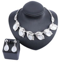 Cat's Eye and Crystal Leaves Necklace & Earrings Wedding Jewelry Set