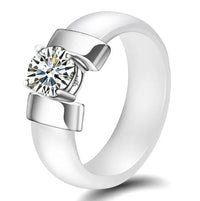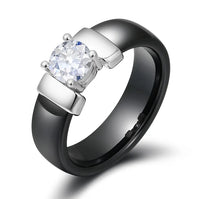 Elevate your special moments with the Wedding Ring by Innovato Design. Go together to come up with a fashionable and meaningful style. The gemstones placed in this piece of jewelry centralizes on the earthly desires that a person has. Made of with high-quality ceramic, the ring is both lightweight and durable. Measuring 6mm in width, it presents a sleek and modern look, perfect for contemporary brides and bridesmaids. This exquisite ring features a stunning cubic zirconia stone at its center, offering a brilliant sparkle that rivals diamonds. Also, this ring is a standard fit type of ring. Available in various sizes to ensure a perfect fit, this ring combines elegance and lasting beauty for your unforgettable moments.
