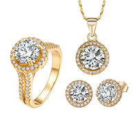 Classic Cubic Zirconia Necklace, Stud Earrings & Ring Wedding Jewelry Set