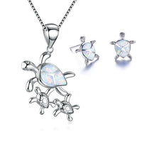 Classic Turtle Fire Opal Necklace & Stud Earrings Trendy Fashion Jewelry Set