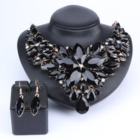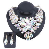 Crystal Flower and Rhinestone Necklace & Earrings Wedding Statement Jewelry Set