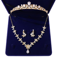 Crystal Leaf and Rhinestone Tiara, Necklace & Earrings Jewelry Set