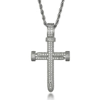 Cubic Zirconia Studded Big Nail Cross Hip-hop Pendant Necklace