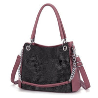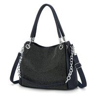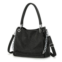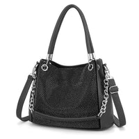 Sport that punk fashion style and carry this Shoulder Bag and Handbag by Innovato Design. The chain, sequins, and shiny buckles of this bag are sure to make you look stunningly beautiful in your own style. Made of leather, this amazing handbag has a smooth, shiny, and soft fabric texture that you will always want to feel and touch whenever you carry it around. It has soft and comfortable handle and strap plus a chain strap so you can carry this bag with ease even with a heavy load. There is enough space inside for all your needs for the day. Also, the hardware pieces are polished for extra oomph on style. Moreover, you can carry this bag with your fashionable style. Product Highlights: Made of leather With polyester lining Bag size: 13.78in X 5.91in X 11.81in X 7.87in Perfect for fashionable style