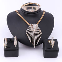 Your beauty is like the bloom of a firework up in the sky because it is amazing and thrilling and this Jewelry Set by Innovato Design adds to it. The sparkling design of these pieces of jewelry makes you shine like a star. Made of 316L stainless steel, this amazing jewelry set comprises of a sleek, polished, and smooth surface as seen over its shank, ornament, earring backs, charms, link chain, and pendant. The necklace has a fine link chain and a pendant that is made of firework flare that is ingrained with crystal channel-set white round brilliant cut stones. Also, the bracelet has a design that is similar to the necklace pendant. Moreover, the earring charms have the same design as the necklace pendant so as the ornament of the ring.