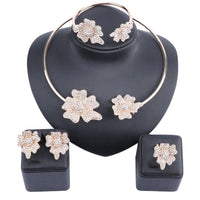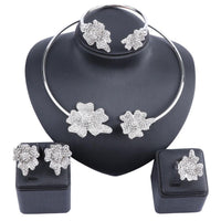 Look pleasing in the eyes when you wear this Jewelry Set by Innovato Design. The flower design of these pieces of jewelry will give you the natural beauty that everyone will like about you. Made of 316L stainless steel, this amazing jewelry set comprises of a sleek, polished, and smooth surface as seen over its shank, ornament, earring backs, charms, link chain, and pendant. The necklace has a single round link chain and a pendant that is made of two flowers on both ends of the link chain and they are ingrained with crystal channel-set white round brilliant cut stones. Also, the bracelet has a design that is similar to the necklace pendant. Moreover, the earring charms have the same design as the necklace pendant so as the ornament of the ring.