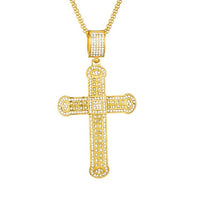 Gemstone-Studded Gold-Plated Cross Bling Stainless Steel Hip-hop Pendant Necklace