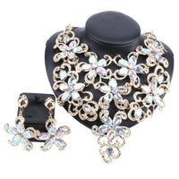 Gold-Plated Crystal Flower Necklace & Earrings Wedding Jewelry Set