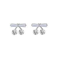 Korean Red/White & Silver Cherry Earrings with Classic Cubic Zirconia