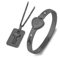Love Heart Lock and Key Stainless Steel Necklace & Bracelet Fashion Couple Jewelry Set