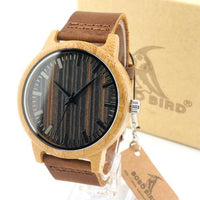 Luxury Bamboo Wooden Watch with Leather Band and Quartz Display