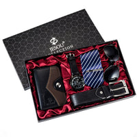Men Quartz Watch, Sunglasses, Folding Wallet, Belt, and Tie Clip Gift Set