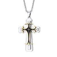 Multi-layer Metal Three Tone Cross Pendant Necklace