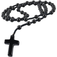 Natural Stone Pendant Cross Bead Rosary Chain Necklace
