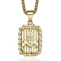 Paved Crystal Square Freemason Bling Stainless Steel Hip-hop Pendant Necklace