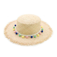 Raffia Panama Hat with Colorful Pompom Tassel Belt