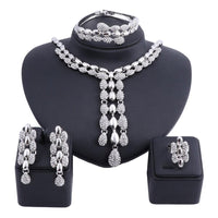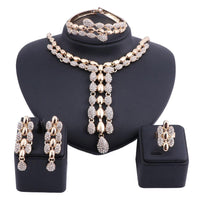 Be a star at your own wedding when you put on this Jewelry Set by Innovato Design. Looking stunningly beautiful is easy when you have these pieces of jewelry on hand. Made of 316L stainless steel, this amazing jewelry set comprises of a sleek, polished, and smooth surface as seen over its shank, ornament, charms, earring backs, link chain, and pendant. The necklace has a pendant that is made of gold or silver pods from the neck down to the chest and at the outer layers are pods that are ingrained with rhinestone channel-set white round brilliant cut stones. Also, the bracelet has a design that is similar to the necklace pendant. Moreover, the earring charms have the same design as the necklace pendant so as the ornament of the ring.