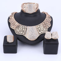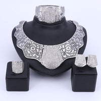 Mesmerize your loved ones with how you look in these Jewelry Set by Innovato Design. You will be forever loved by the people close to your heart when they've known how much you've prepared for the ceremony. Made of 316L stainless steel, this amazing jewelry set comprises of a sleek, polished, and smooth surface as seen over its shank, ornament, earring backs, charms, link chain, and pendant. The necklace has a steel bar link chain and a pendant that is made of portions of steel with rose patterns and in the middle is ingrained with crystal channel-set, "pick your color," round brilliant cut stones. Also, the bracelet has a design that is similar to the necklace pendant. Moreover, the earring charms have the same design as the necklace pendant so as the ornament of the ring.