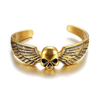 Silver/Gold Toned Stainless Steel Winged Skull Bracelet