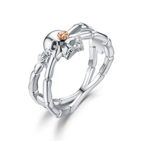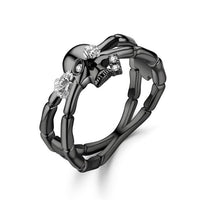 Skull, Skeleton Hand, Flower and Cubic Zirconia Punk Biker Ring
