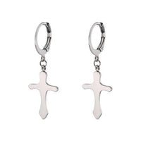 Small drop cross hoop earrings for men and women by Innovato Design