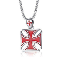 Stainless Steel Polished Knights Templar Cross Pendant with Chain Necklace