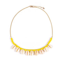 This lovely beaded necklace has a durable metallic chain base that you can comfortably wear. The front of the necklace is laced with lovely beads that are available in different colors: turquoise, white, orange, pink, white, green, red, yellow. Dangling between sets of beads are these natural puka shells. This lovely Innovato Design piece only weighs 25g and is lightweight and easy to wear. The length of the chain is 19" long and it also comes with a 6 cm extender chain.