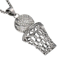 Titanium Steel Basketball Hoop Crystal Pendant Necklace