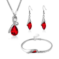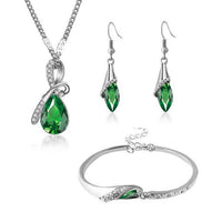 Approve of the elegant style that this Wedding Jewelry Set by Innovato Design gives when you put it on. The water drop style of the gemstone in these pieces of jewelry gives a refreshing look to your get-up. Made of 316L stainless steel, this magnificent wedding jewelry set has a polished, smooth, and sleek surface over its link chain, pendant, charms, and earring hooks. The necklace has a twisted curb link chain and a pendant that is made of crystal gypsy-set white round brilliant cut stones and a crystal bezel-set, "pick your color," pear cut main stone. Also, the earring charms and the bracelet charm have the same design as the necklace pendant.
