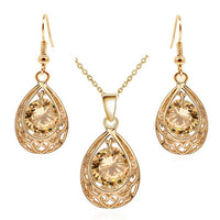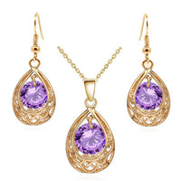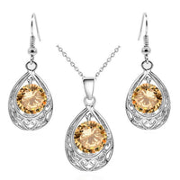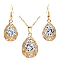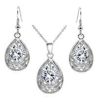 Water Drop Cubic Zirconia Necklace & Earrings Vintage Fashion Jewelry Set